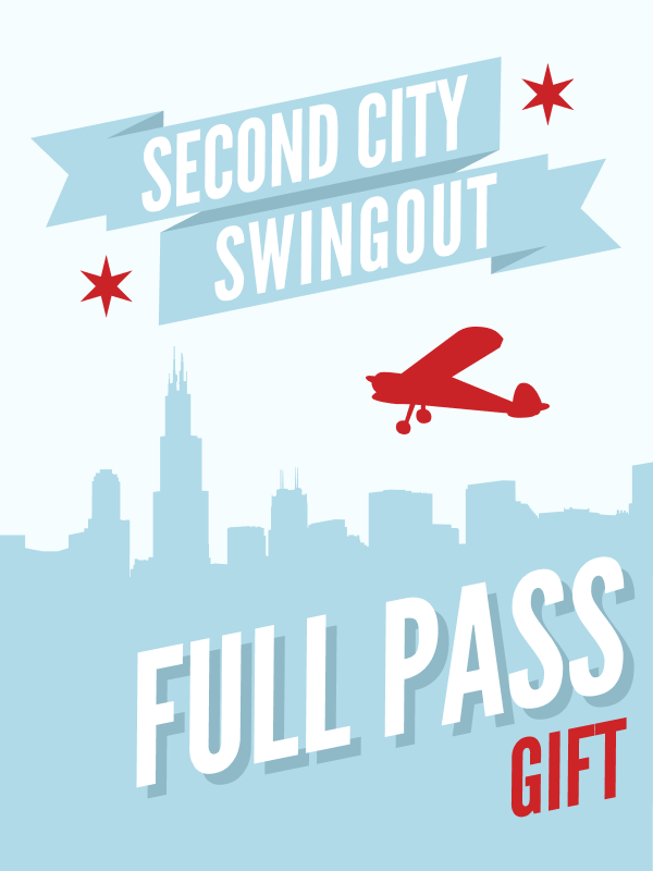 This pass is to purchase a Full Pass to Second City Swingout as a gift to someone else. When purchasing, you may specify the recipient for the gift, or if you don’t want to specify a recipient, the Traffic Jam! team will select someone on your behalf. You may gift this pass anonymously or not.